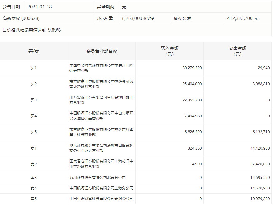 此前高新发展4月9日龙虎榜数据显示,深股通专用席位买入1亿元并卖出8506.58万元,一机构净买入5279.86万元,牛散葛卫东(国泰君安上海分公司)为卖一席位,净卖出1.89亿元。