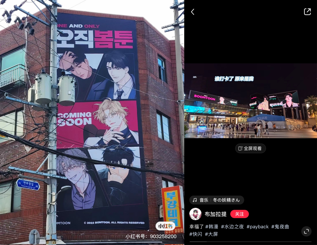 女性向内容上,韩漫套路可以大致分为两种。一边是重生、恶女、养娃三条线路并排走,用精致画风、复仇文学、女尊买股吸引受众,这一类别下,欧风、奇幻背景设定占比较高。一边是被嘲笑着“双开门” “保温杯”“矿工”“剧情拉垮”,主角永远欠着天价债务,却影响力越来越大的耽美。专攻耽美内容的网站bomtoon,已经在韩泰多次开启快闪活动。B站上,该网站的注册教程,就有近十万的播放。