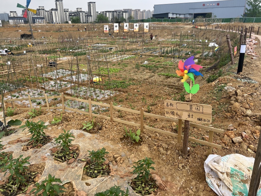 据了解,共享菜地已认领过三批,均获得不错反响,目前,整片土地被分成了包含30㎡、60㎡等多个面积的“田块”,田地中树立着木牌与风车,上面显示着认领人的信息。