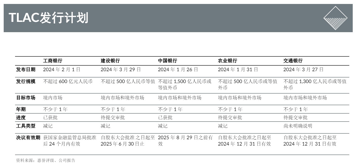 值得注意的是,除工商银行仅在境内发行TLAC债,其他四大国有行均可能同时面向境内和境外市场发行。