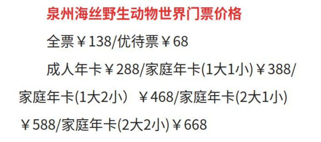 △2024泉州海丝野生动物园年卡价格(图源:泉州本地宝)