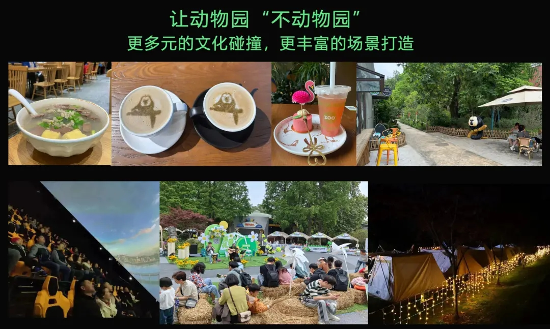 此外,打造个性化消费场景,让动物园变得更年轻态。随着更多的年轻人参与到了野生动物保护和生态环境保护的行动中来,如今的动物园不再是传统意义上“动物园”,正在变成一个更潮、更时尚、更有活力的生活场景。比如,在上海、广州、成都、重庆等动物园内不仅可以品美食、喝咖啡、开派对,还可以看电影、听音乐会、园里露营等,能够满足年轻人的一万种需求,也为动物园带来了更多的人气和旅游收入。