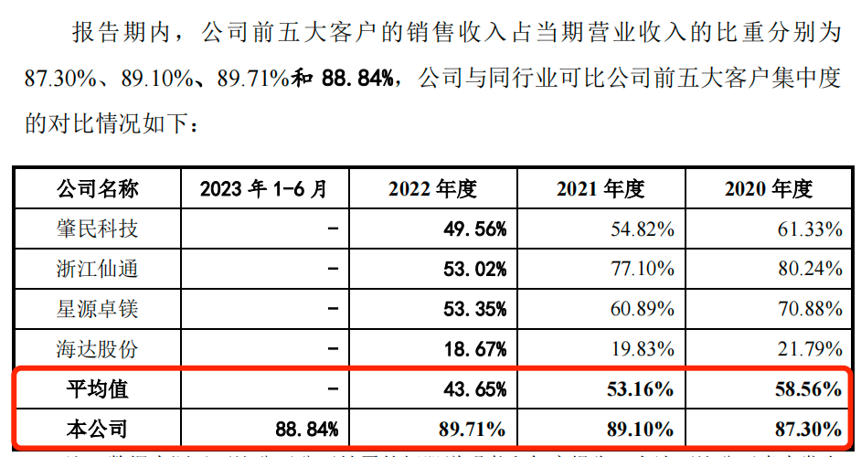 此外,和同行公司相比,科力股份的“大客户依赖症”也较为严重。