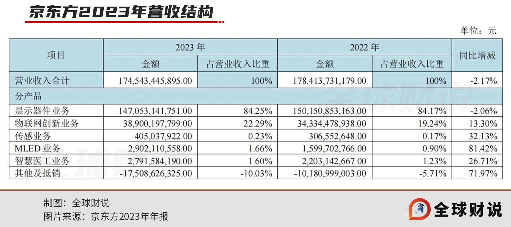 尽管京东方依旧面临着营收、净利润双双下滑的窘境,但降幅均有所收窄。2023年营业收入同比下降2.17%至1745.43亿元,归属净利润仍是极度收窄,同比下降66.22%至25.47亿元。