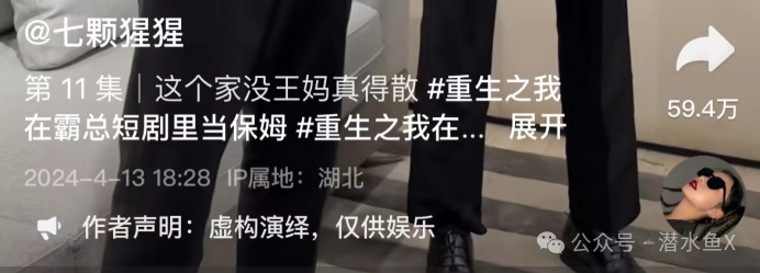 好处在于,作为剧情号,和其他搞笑、整活博主相比,至少可以免除真实性上的隐忧,不会像Thurman猫一杯一样被封号。点开七颗猩猩和派小轩的视频,现在都能看到一条作者声明,“虚构演绎,仅供娱乐”。