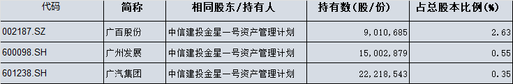 值得一提的是,2014年,王德亮还直接以自然人股东身份先后进入金鹰股份(600232.SH)、*ST西发(000752.SZ,西藏发展)等十大股东名单。骄龙资管旗下资管计划也先后布局广汽集团(601238.SH)、广州发展(600098.SH)、广百股份(002187.SZ)、珠江啤酒(002461.SZ)、皖通高速(600012.SH)等多家上市国企。
