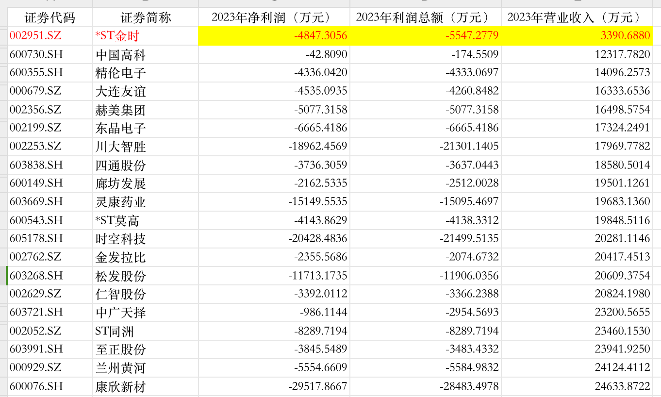 截至目前,已发出2023年年报的上市公司近半,其中*ST金时(002951.SZ)值得注意。
