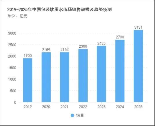 根据欧睿国际的统计数据显示,我国包装饮用水市场在2019年至2023年期间呈现出稳健的增长趋势,预计到2025年,整体销售额将有望突破3100亿元人民币的重要关口。