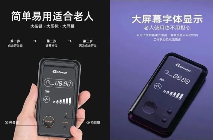 除此之外,天猫平台上不少睡眠仪产品还针对中老年用户进行了适老化设计,如屏幕和按键放大、简化使用逻辑等。