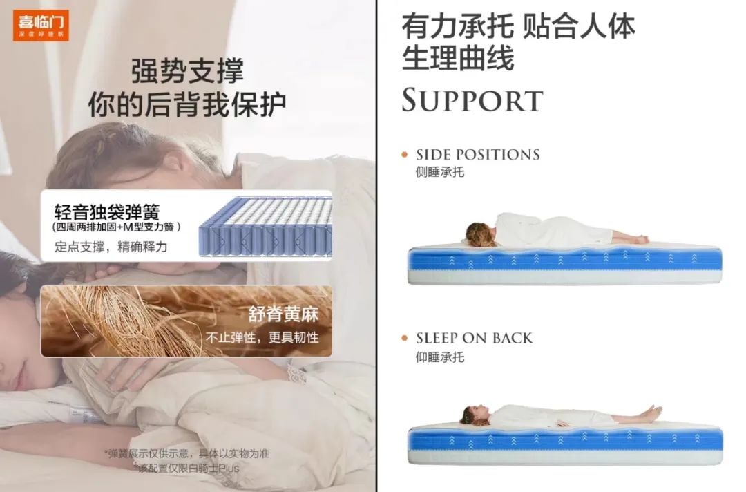 知名床垫品牌喜临门,便曾面向中老年人群推出适老化产品线“天然黄麻护脊硬床垫”。除了能满足抑菌防螨的健康需求外,该床垫结合中老年人的脊椎特性,通过偏硬质地形成强支撑力,有力承托脊椎,保持身体自然曲度,有效保护中老年人群的脊椎健康。