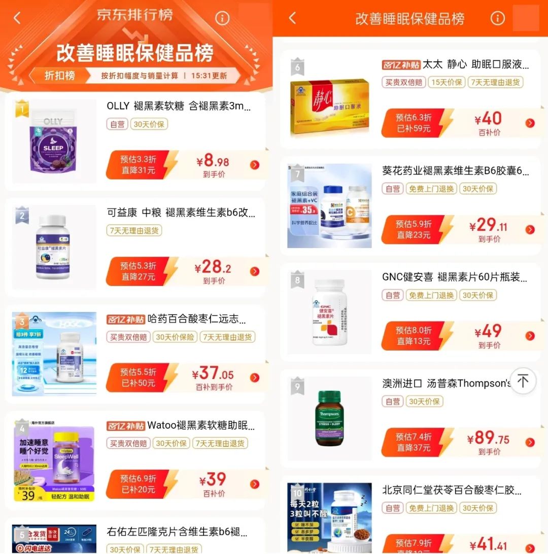 除此之外,由于近年来相关研究的深入,有关褪黑素副作用的各类报道在社交网站上不胫而走,引发了部分中老年消费者的担忧,由此催生了其他更多新型助眠成分产品的热销。