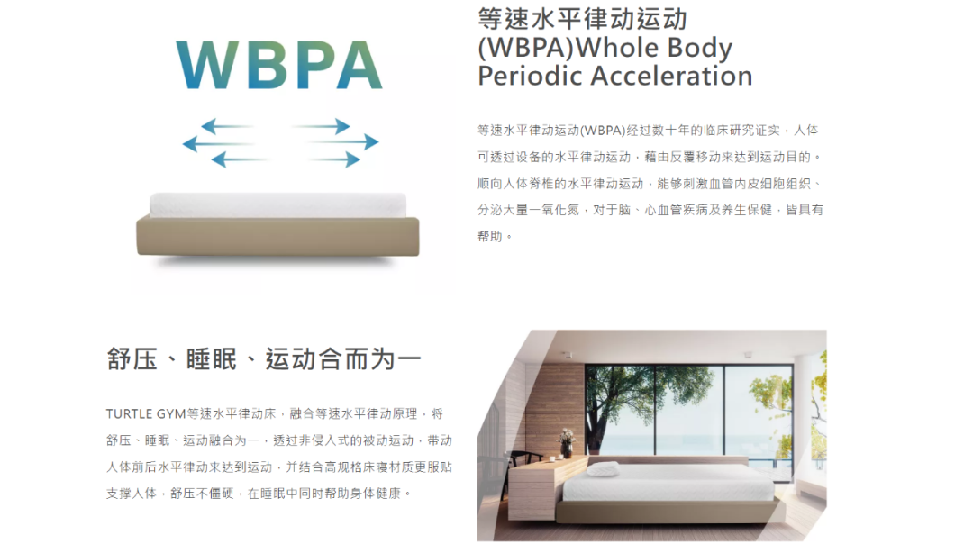 在这一点上,日本熟龄健身品牌TURTLEGYM的经验值得参考。目前全球有超过1500个健身场所引进了TURTLEGYM的熟龄健身解决方案,除此之外,背靠其在银发健身领域强大的品牌影响力,TURTLEGYM还推出了集健身和睡眠于一体的睡眠优化产品,包括等速水平律动床、曲线舒腿枕等,将运动、睡眠融合为一,让一些行动不便的银发人群躺着也能运动。