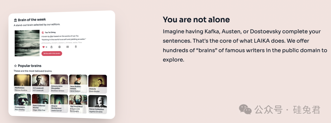 LAIKA的AI让像是简奥斯汀和埃德加爱伦坡等著名作家成为用户的“大脑”,用户可以选择用任何作家的风格写作,或让LAIKA软件帮助探索和找到他们自己的写作风格。