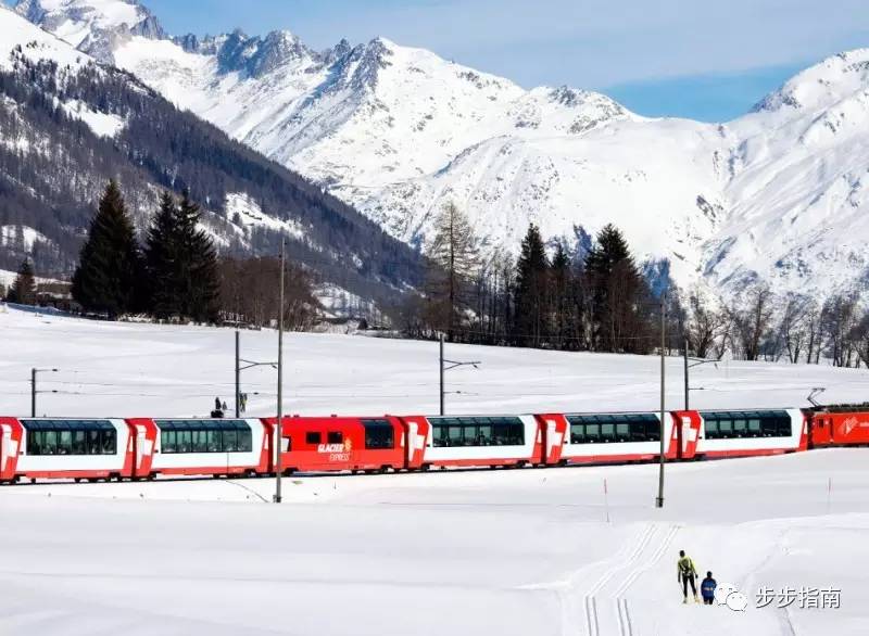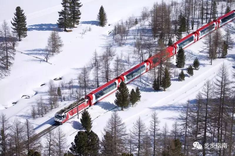 ▲红色的火车慢慢行驶在白色的世界里 图自瑞士高端旅游