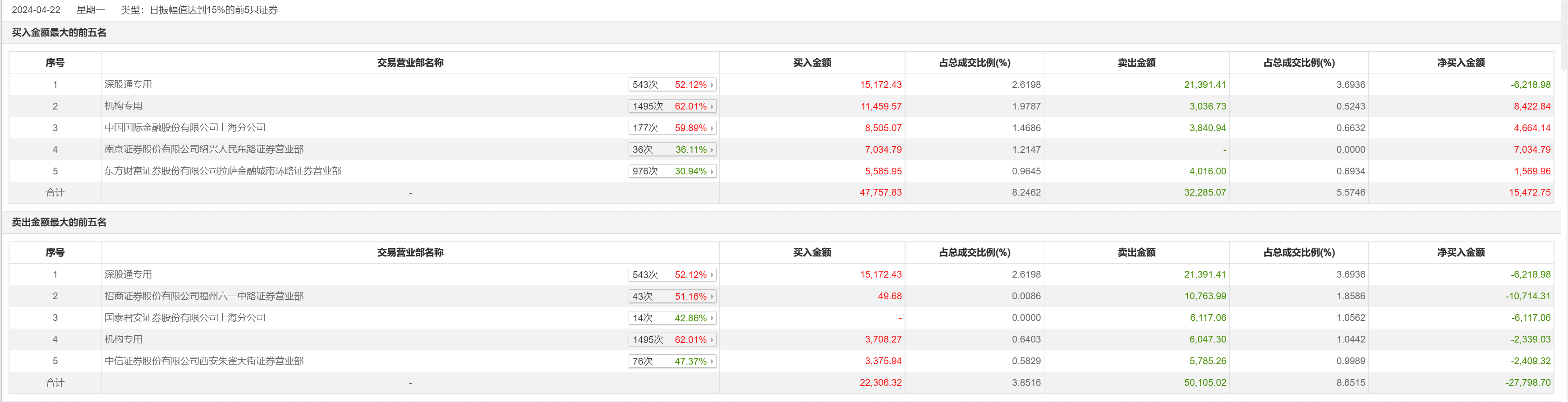 具体来看,机构买入1.52亿元,卖出9084.03万元,合计净买入6083.81万元。此外,知名游资现身龙虎榜,方新侠(中信证券股份有限公司西安朱雀大街证券营业部)净卖出2409.32万元。此外,深股通专用、招商证券福州六一中路证券营业部分别卖出2.14亿元、1.08亿元;深股通专用、中国国际金融上海分公司分别买入1.52亿元、8505.07万元。