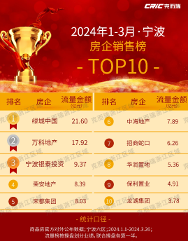 而在宁波,克而瑞数据显示,2024年1-3月,绿城凭借宁波中心、凤麓和鸣、燕语春风、春风晴翠等多项目网签备案,以超21亿元的业绩再度领跑市场,诉说着站在相逢20年的新起点,与城市共同奋进的新征程。