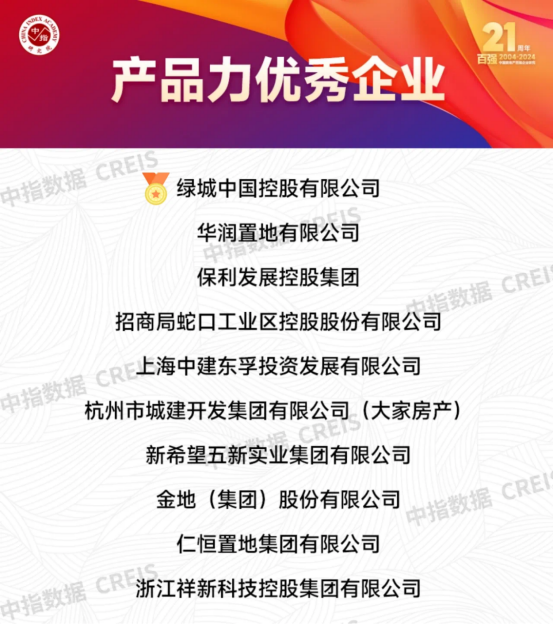 砥砺以恒,不负芳华。今年3月,中指院发布中国房地产百强企业研究成果,绿城中国已连续第五年蝉联“中国房地产产品力优秀企业”TOP1,并在“2023中国房地产交付力优秀企业”榜单中位列TOP2。同时,绿城中国凭借稳健性经营、全品质生产、高质量发展、可持续成长的全维构建,蝉联房地产百强企业综合实力TOP10。沉甸甸的奖项背后,是绿城不移的产品主义之心,亦是关于美好生活的信念与承诺。