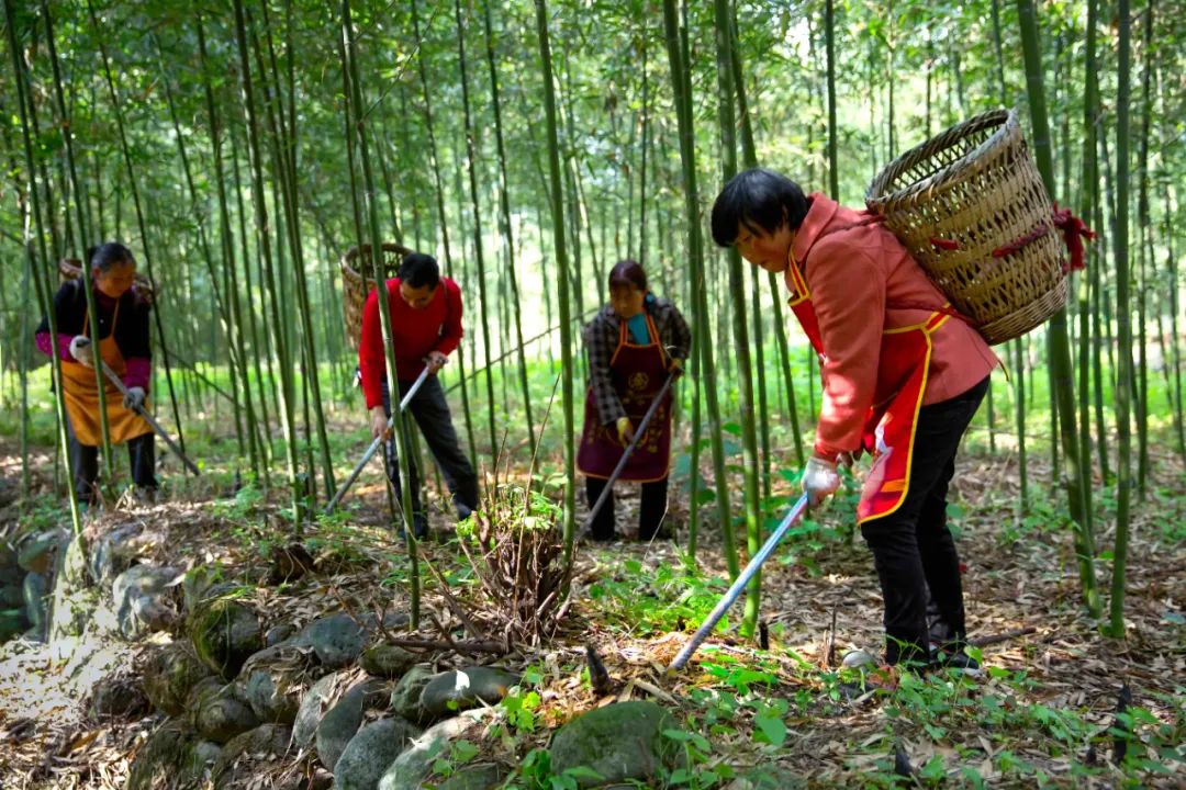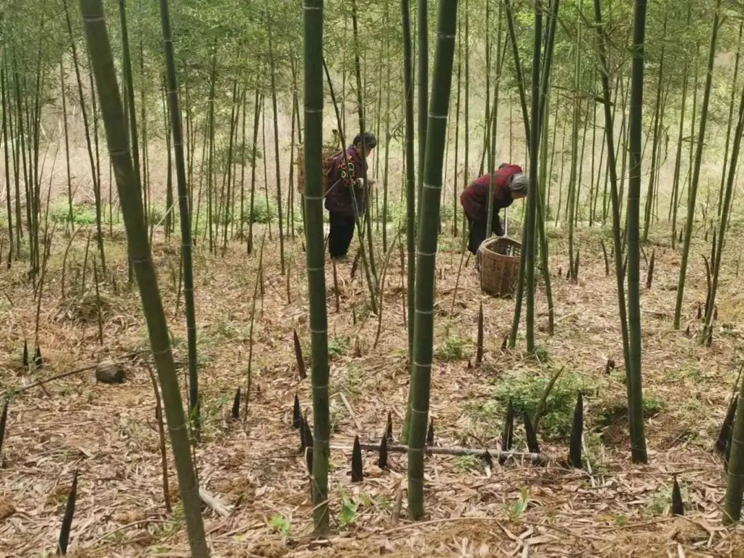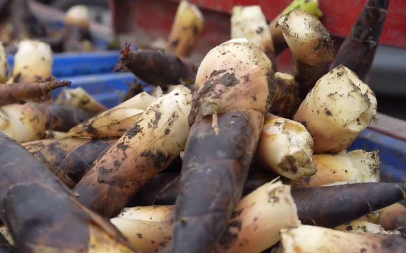 眼下,龙门山镇渔江楠村的春笋已大量上市。在青翠欲滴的竹林深处,大大小小的春笋冒出了头,笋农们穿梭于竹林中采收,林间一派喜获丰收的忙碌景象。