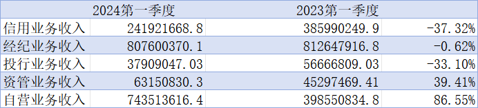 开源证券研究报告指出,从券商2024年一季度几项业务情况看,经纪、投行和资管三大手续费收入同比或仍有压力,权益自营和衍生品波动对中小券商投资收益带来拖累,券商一季报业绩或同比承压。