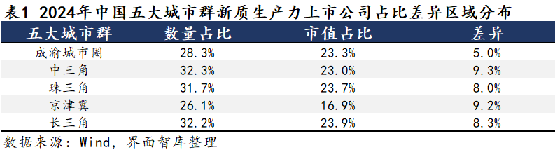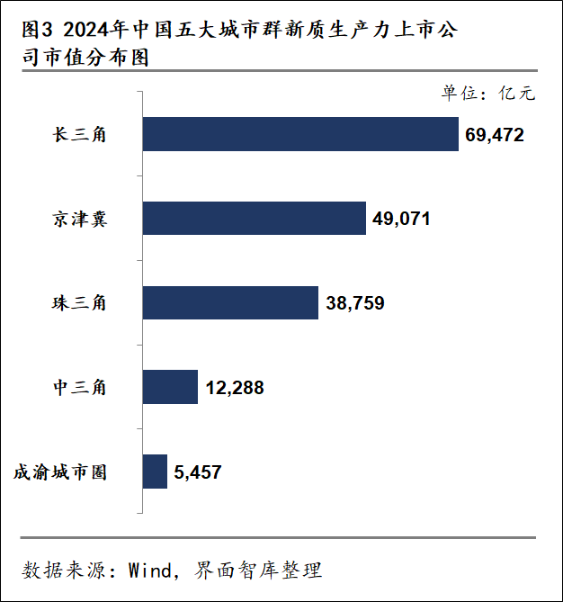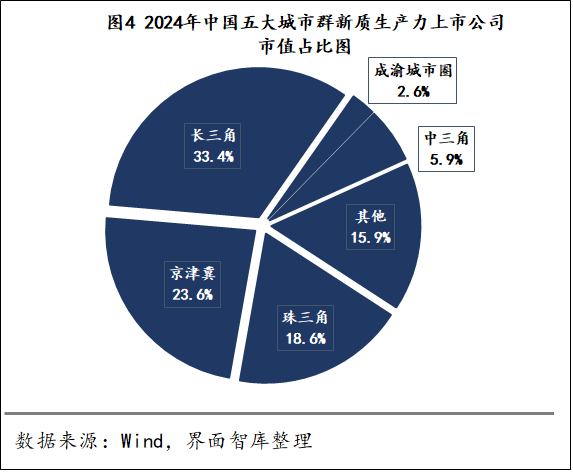 2、新质生产力上市公司市值:京津冀排名跃升第二,五大城市圈占比超八成