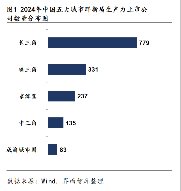 1、新质生产力上市公司数量:长三角居首,珠三角、京津冀紧随其后