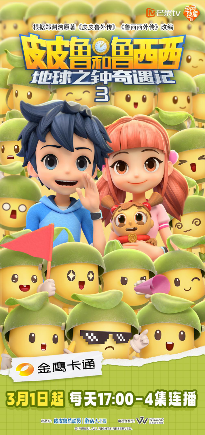 芒果TV独播、由皮皮鲁总动员出品的《皮皮鲁和鲁西西地球之钟奇遇记第三季》在Q1跟粉丝见面,目前播放量高居Q1上新作品播放量第三位,达到了5113万次。