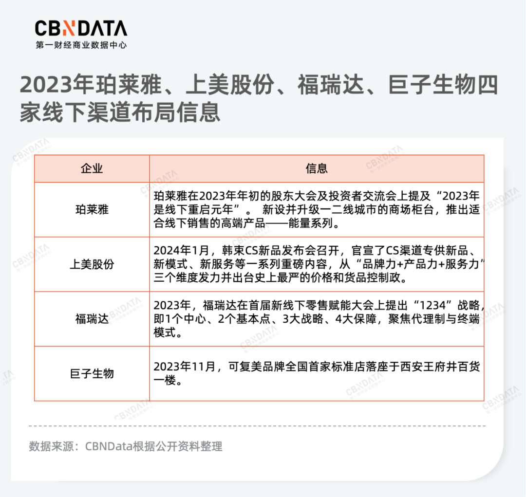 从财报可见,头部上市企业在线上渠道高歌猛进,尤其是在抖音等内容电商平台。其中上美更是验证了短剧与美妆销售的高适配性——韩束通过在剧中的软植入,成功带动“红蛮腰礼盒”出圈。与此同时,企业也在持续优化线下渠道这块“纯增量”市场。随着线下客流量的全面恢复,珀莱雅等公司开始重点布局百货渠道与日化渠道。而同样欠缺线下渠道投入的上美、福瑞达等也针对线下市场采取一系列行动。