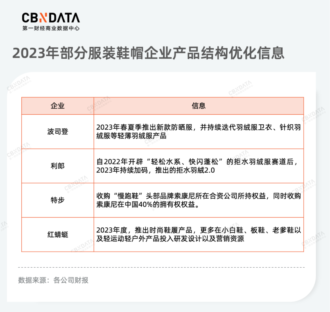 其一,积极优化产品结构,通过引入“新品牌”、“新产品线”以及加大“新业务”投入,强化品牌矩阵。随着消费者对户外活动需求与日俱增,传统服装品牌纷纷搭上户外热的车,希望迎来“飞驰人生”。而本就专注于运动场景的运动服饰企业进一步扩大自身优势,通过收购、独家代理等方式构筑市场壁垒。2023年,特步持续收购索康尼所有权,而三夫户外则获得以滑雪、徒步为主打的品牌Houdini独家代理权。