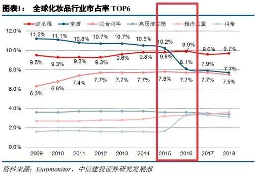 从财报来看,SK-II下跌对宝洁造成影响的背后,实际上还是由于2015年的“瘦身”,过犹不及直接导致2016年始,欧莱雅全球市占率反超宝洁。