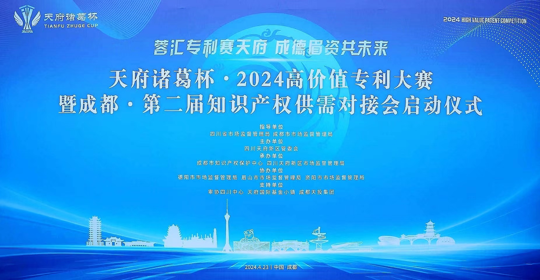 4月23日上午,第二届成都高价值专利大赛——天府诸葛杯·2024高价值专利大赛在四川天府新区正式启动。本届大赛由四川省市场监督管理局、成都市市场监督管理局指导,四川天府新区管理委员会主办,成都市知识产权保护中心、四川天府新区市场监督管理局承办,德阳市市场监督管理局、眉山市市场监督管理局、资阳市市场监督管理局协办。