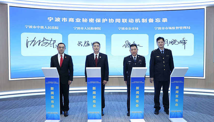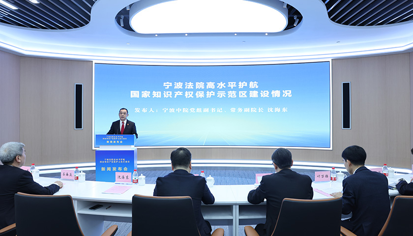 4月23日上午,在第24个世界知识产权日来临之际,“高水平护航国家知识产权保护示范区建设”新闻发布会在宁波市中级人民法院融媒体中心召开。