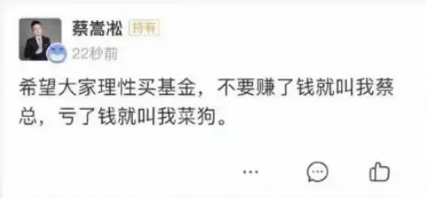 2022和2023年,公募基金产品合计亏损1.9万亿元,蔡嵩松们纷纷跌落神坛,其中不少人除了公开向基民道歉,还试图通过灌输“心灵鸡汤”,抚慰昔日的忠实粉丝。