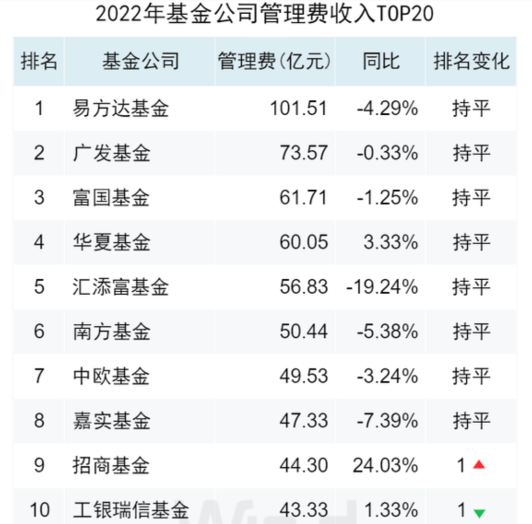 2022年公募基金亏损1.47万亿元,但是头部前十名的基金管理费均在几十亿,其中易方达基金公司的管理费排在第一,为102亿元。前十大基金公司的管理费在2022年合计达到了588亿元,而2022年公募基金行业的管理费为1458.26亿元,头部十家就拿下了40%。