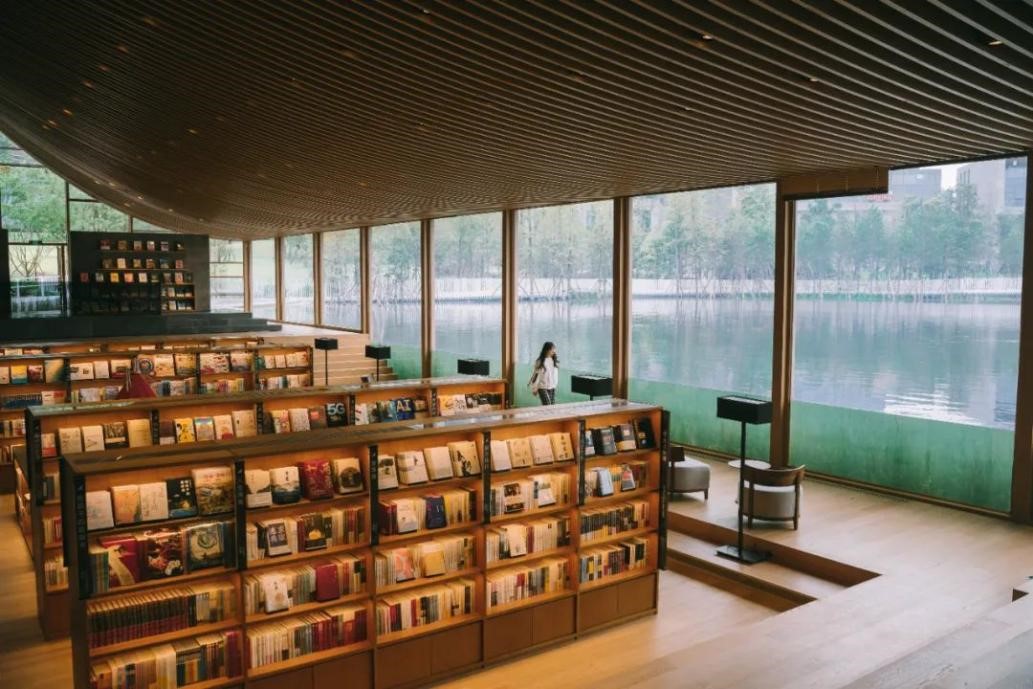 在这里,人们可以一边看着鱼儿从身旁悠闲地游过、看游人从桥上惬意经过,一边沉浸在书中的宇宙,这种独一份的体验,让每一个第一次来的人都会留下阵阵惊呼。