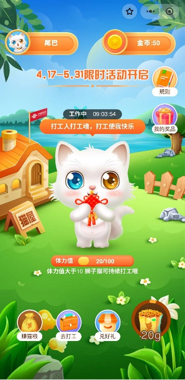 “玩家可以通过‘做任务’获得猫粮喂养猫咪,每次喂食猫咪都可以增长体力值,当体力值到达一定要求,猫咪就能‘打工就业’赚取金币,玩家可以使用金币换取‘兑换中心’内的奖品。无论是在通勤路上、午休间隙,还是闲暇之余都能轻松畅玩,让碎片化时间充满乐趣与收获。” 中国联通APP山东运营团队负责人这样介绍到。