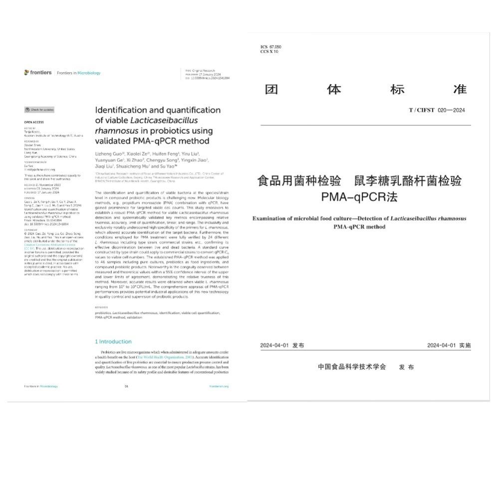 该技术方法团体标准经中国食品科学技术学会发布,为全球范围内首个将PMA-qPCR技术应用于食品用菌种活菌定量检测的标准方法。