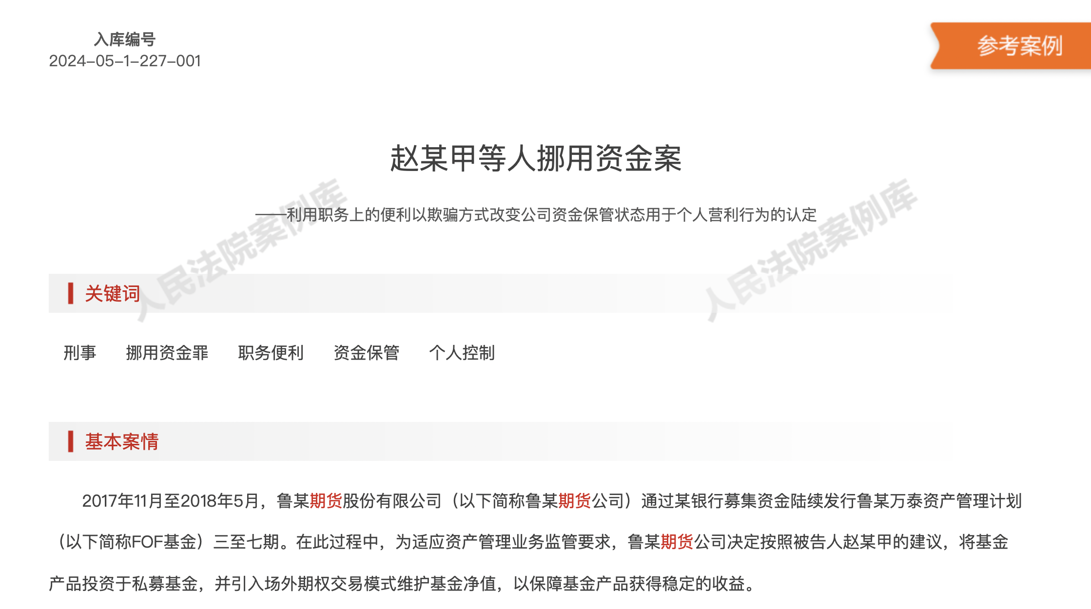近日,人民法院案例库披露了一则期货公司高管因挪用公款入狱的刑事案例。
