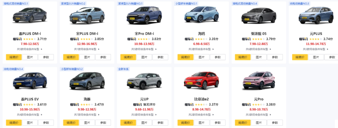 今年年初,比亚迪以“电比油低”的口号陆续推出部分系列车型的“荣耀版”,降价幅度最高达到了5万元,原本10-15万元区间的车型降价之后,有的起售价直接到了10万元之下。