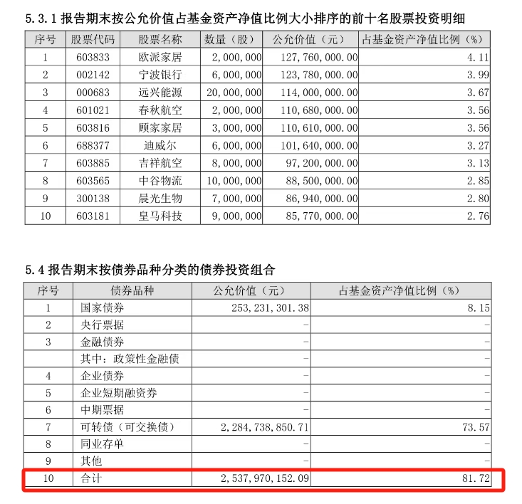 界面新闻记者整理发现,有几只混合债券型二级基金的投资组合报告中显示,债券资产占基金总资产的比例没有达到80%。