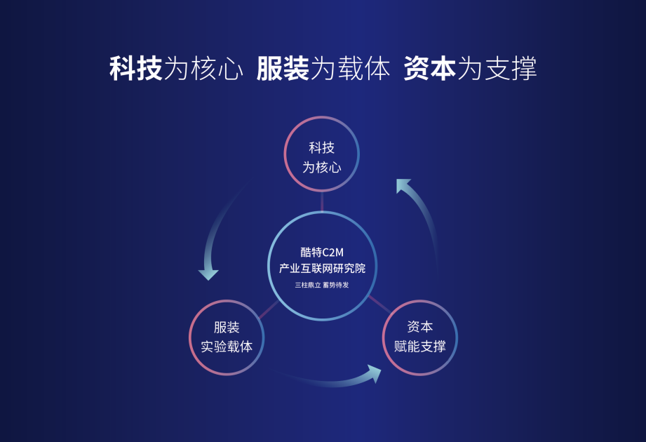 按照酷特智能全新的战略规划,将以“C2M产业互联网AI科技的引领者”为战略定位,以“酷特C2M产业互联网研究院”为核心,聚焦“产业互联网科技”从0-1的基础科研,以“科技为核心、服装为载体、资本为支撑”的三柱鼎立为战略布局。