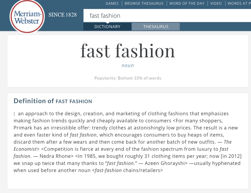《韦氏大词典》网站上对于“快时尚”(Fast Fashion)一次的释义