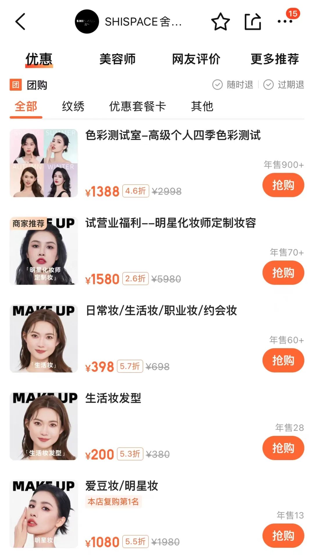 SHISPACE部分服务价格表(图源:大众点评)