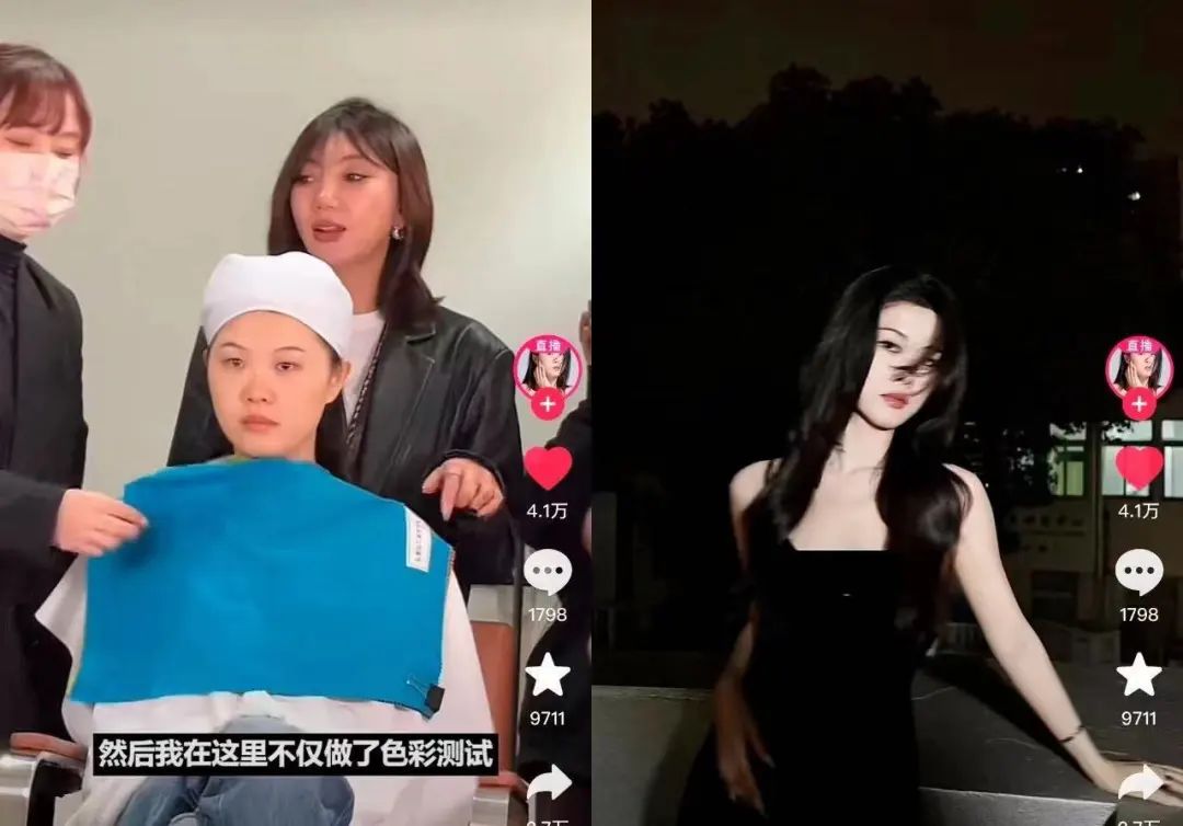 博主“黑心少奶奶”造型前后对比(图源:抖音)