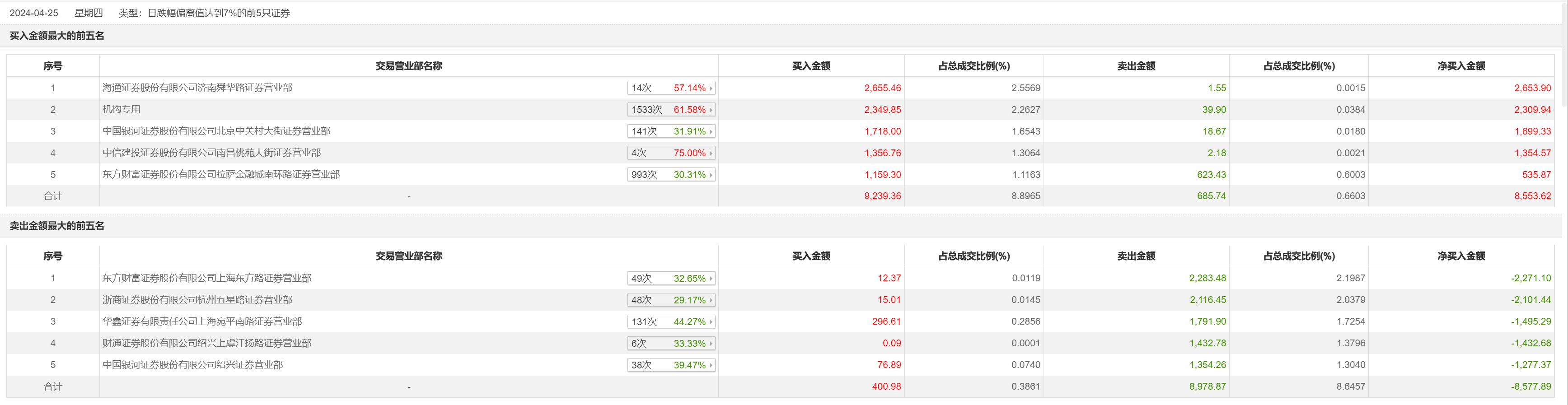 具体来看,机构买入2349.85万元,卖出39.9万元,合计净买入2309.94万元。此外,知名游资现身龙虎榜,赵老哥(中国银河证券股份有限公司绍兴证券营业部)净卖出1277.37万元、炒股养家(华鑫证券有限责任公司上海宛平南路证券营业部)净卖出1495.29万元。此外,东方财富证券上海东方路证券营业部、浙商证券杭州五星路证券营业部分别卖出2283.48万元、2116.45万元;海通证券济南舜华路证券营业部、中国银河证券北京中关村大街证券营业部分别买入2655.46万元、1718.00万元。