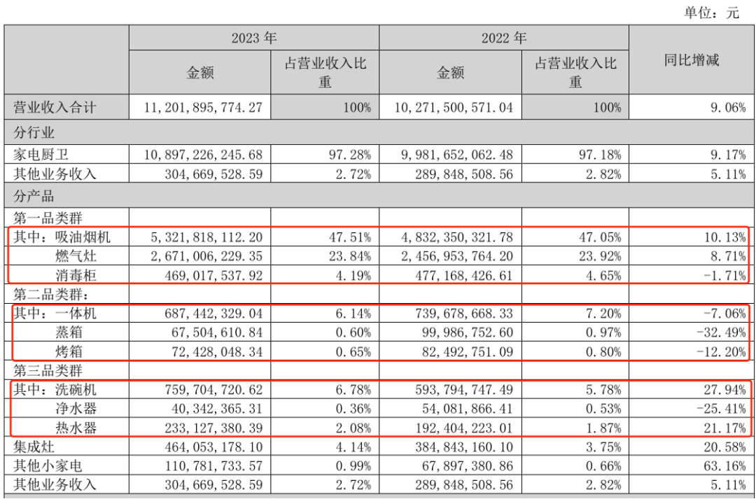 抽油烟机勉强实现两位数增长,燃气灶实现高个位数增长,而第二品类的一体机、烤箱、蒸箱实现负增长,第二品类业务增速全军覆没。