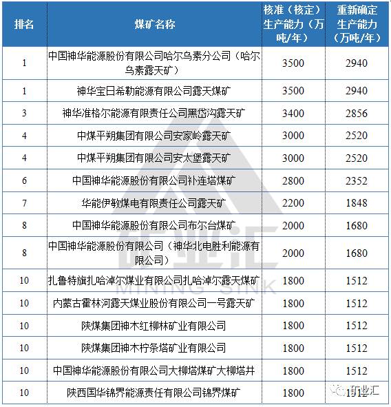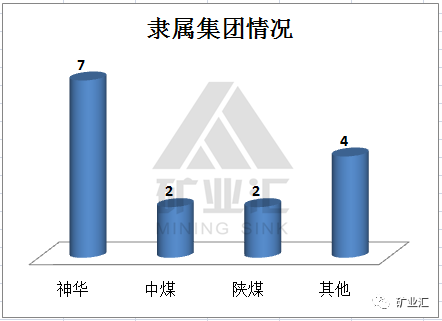 前10名15座煤矿,神华有7座,中煤、陕煤各2座。