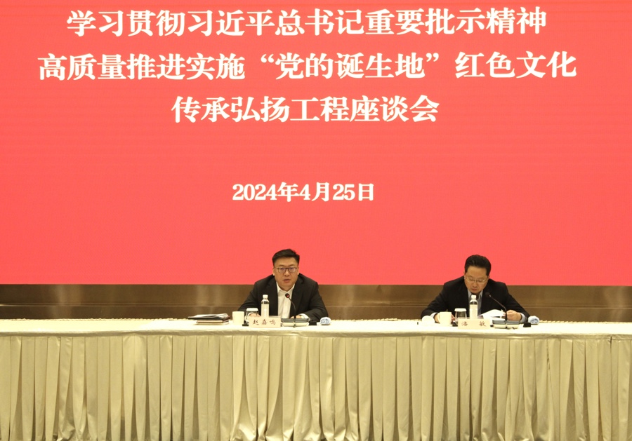 4月25日,上海市学习贯彻习近平总书记重要批示精神,高质量推进实施“党的诞生地”红色文化传承弘扬工程座谈会召开。市委常委、宣传部部长赵嘉鸣出席会议并讲话。