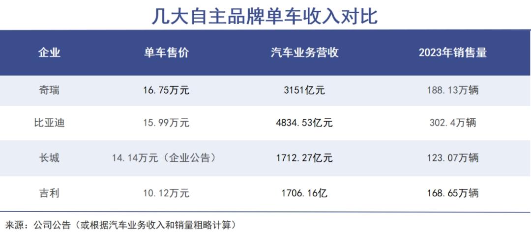 由于售价数倍于国内的海外市场占据一半,奇瑞的价值创造能力显著增强。巨潮粗略计算,奇瑞单车售价已经超越比亚迪、长城汽车和吉利,超过16万元。当然这一数字是按照集团整体收入计算,但即便达到15万元,在自主品牌中已经十分难得。