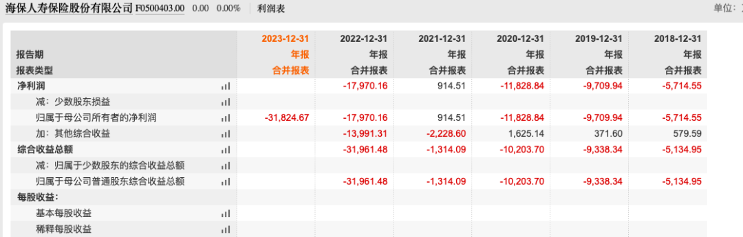 成立至今,海保人寿仅2021年实现净利润914.51万元。2022年重回亏损,亏损1.8亿元;2023年亏损3.18亿元。