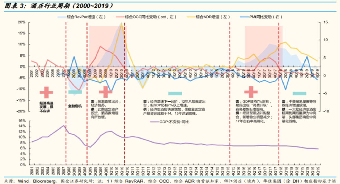 回看2008年金融危机后的复苏潮和2018年的消费升级潮,每次波峰后入住率都会下降。